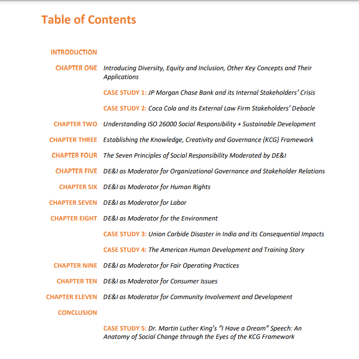 In this thought-provoking book, Dr. Matthew Ajiake aligns the 7 principles and 7 core subjects of social responsibility based on ISO 26000 with DEI and presents a systematic approach to integrating both by introducing the knowledge, creativity and governance (KCG) model.